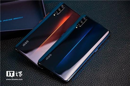 iQOO为vivo旗下子品牌,该手机搭载骁龙855处理器,采用6.41英寸的AMOLED灵动水滴屏,屏占比高达91.7%。全系标配DSP屏幕指纹,两扇惊艳的电光纹搭配隐藏了一条多彩LED灯带,内存采用LPDDR4x高速运存,6+128GB/8+128/8+256GB/12+256GB多款容量可选,支持NFC支付,同时保留了3.5mm耳机接口。